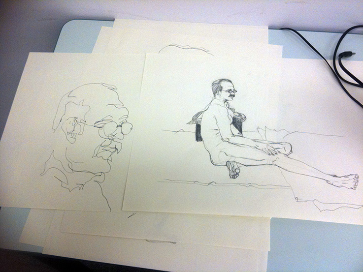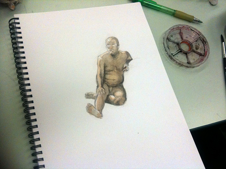 The double session last week also means that we will beginning our new regular rotation from next week which is: 4 weeks of single model sessions (female/male/female/male), 1 clothed model session, 1 double model session, then we start over again. To help everyone keep track of the dates, the next double session is on May 5th (it’s seven weeks away as April 21st is a holiday)