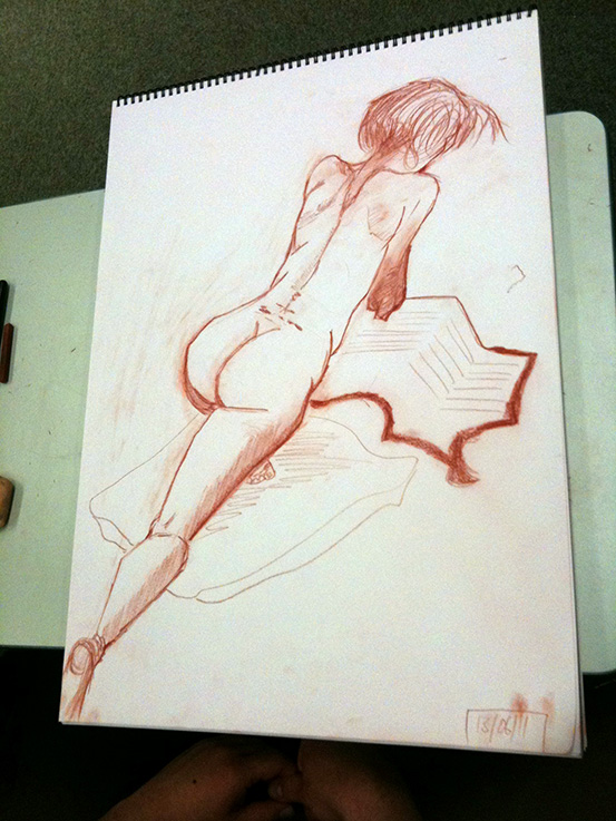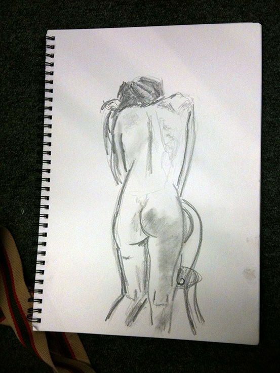 For those of you who missed Kiah when she came in, you missed out on a special treat as she showed up revealing that she is 7 months pregnant. I’ve told her that I will certainly have to have her in again in the next 4-6 weeks as it really made for a wonderfully different human shape to draw.